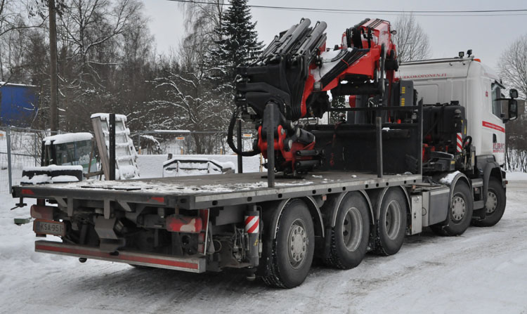 In Finland the use of 5-axled trucks is quite common, also with a trailer. Nowadays Scania delivers these 5-axled chassis directly from the factory, as the demand has gone up, also due to the swiss and dutch markets.