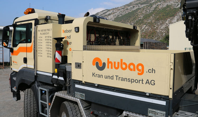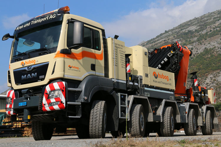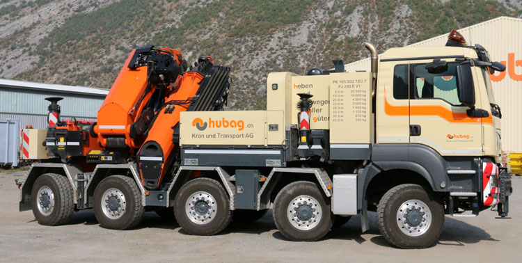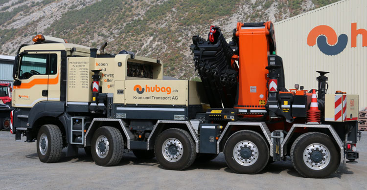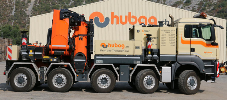 | Die Firma Hubag Kran und Transport AG, früher bekannt als Bregy, aus Turtmann (CH) hat in 2018 das Furhpark um dieser toller MAN TGS erweitert. In 2005 war ich schon mal dort, damals um den Steyr mit PK100002 Kran zu fotografieren, klick hier für den Bericht. |